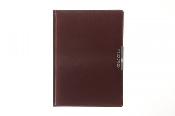 Kalendarz posiada rozbudowana część informacyjną oraz kolorowe mapy Polski i Europy. Bloki szyte nićmi, dwa kolory druku (szary-burgund). Oprawa na tekturze z gąbką, przeszywana, termoprzebarwialna, umożliwia wykonanie nadruków, głębokiego tłoczenia i personalizacji laserowej kalendarza. Posiada wstążkę kolorystycznie zharmonizowaną z okładką