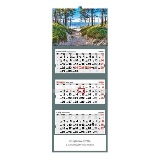 Kalendarz ścienny DROGA NA BAŁTYK trójdzielne A3+ Jotan (T47)