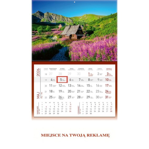 Możliwość wykonania nadruku reklamowego na dole kalendarza.