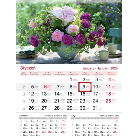 Kalendarz ścienny JEDNODZIELNY 2025 BUKIET A4 Lucrum (KJ04)