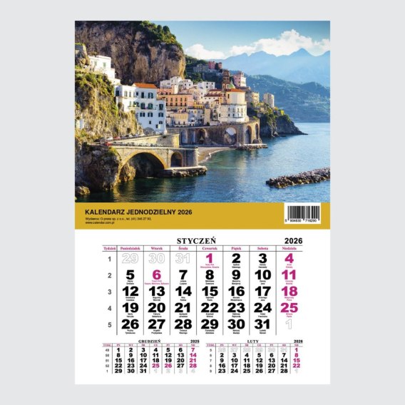 Kalendarz ścienny JEDNODZIELNY WIDOK A4 210mm x 295mm Press