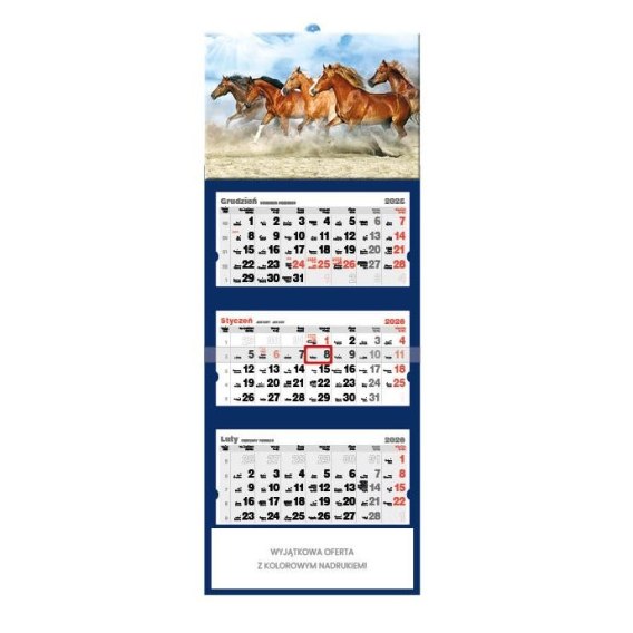 Kalendarz ścienny KONIE trójdzielne- Jotan (T46)