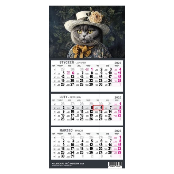 Kalendarz ścienny KOT A5 210mm x 450mm Press