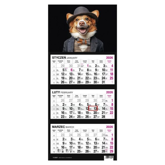 Kalendarz ścienny PIES 310mm x 790mm Press