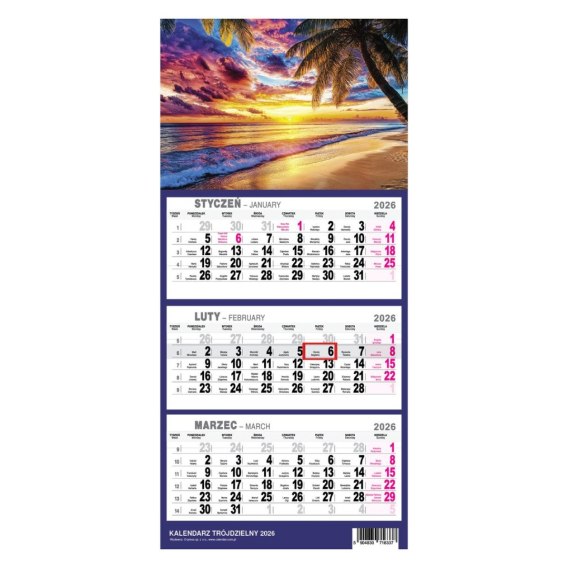 Kalendarz ścienny PLAŻA A4 210mm x 450mm Press