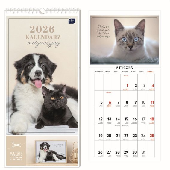 Kalendarz ścienny motywujący 220mm x 460mm Interdruk (ZWIERZAKI)