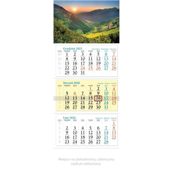 Kalendarz ścienny trójdzielny 320mm x 860mm Lucrum (KT06)