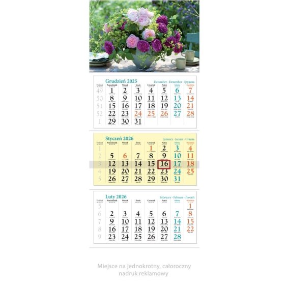 12 cm), z bigowaniem; brak możliwości nadruku pomiędzy kalendariami
