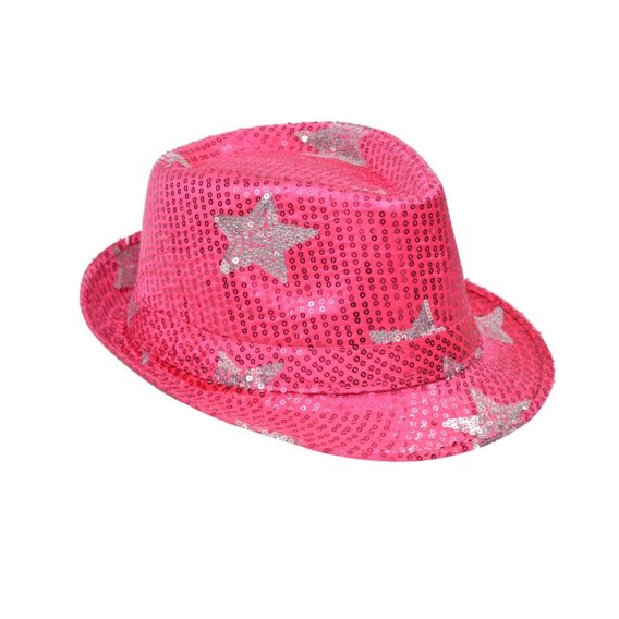 Cekinowy kapelusz z gwiazdami Rozmiar uniwersalny Kolor: różowy