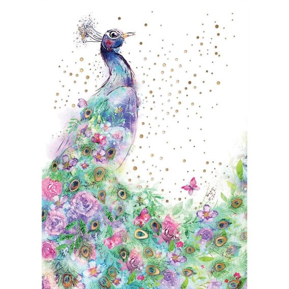 Kartka składana KARNET B8 paw w kwiatach Henry (5905701484386)