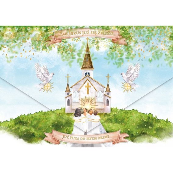 Kartka składana Karnet A5 KOMUNIA KOPERTA KOSCIÓLEK Z DZIECMI A5 Henry (5905701482184)