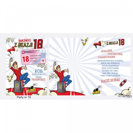 Kartka składana PARTY Urodzinowy dla chłopaka 18 lat B6 Ev-corp (STKP-018)