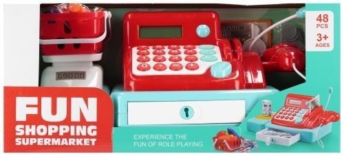 Zalety produktu: kasa sklepowa mały supermarket z 48 akcesoriami, wyposażona jest we wszystko czego potrzebuje sprzedawca, dzięki czemu zabawa jest atrakcyjniejsza, kasa posiada efekty dźwiękowe, świetlne, czytnik skanerem produktów przy kasie wydającym efekt dźwiękowy odzwierciedlając prawdziwy, kasa z wyświetlaczem i czytnikiem kart oraz wysuwaną szufladą zamykaną na kluczyk. Dzięki zestawowi z serii FUN shopping supermarket, dziecko wyposaży się we wszystkie najpotrzebniejsze do życia produkty spożywcze. Kasa supermarket MEGA CREATIVE sprawdzi się jako jeden z ulubionych elementów zabaw naszych pociech, który pozwoli dzieciom na odgrywanie ról sprzedającego i kupującego. Zawartość zestawu: kasa sklepowa, kosz z artykułami spożyczwo-przemyslowymi, mleko, kawa, sok, banknoty i monety. Całość wykonana z plastiku i kartonu. Wymiary/waga/baterie: wymiary produktu (dł. x wys. x gł.)[cm]:- kasa 34x51x19, -koszyk 11x6x9, wymiary opakowania (dł. x wys. x gł.) [cm]: 39x17x19, waga produktu bez opakowania [kg]: 0,68 kg, waga produktu w opakowaniu [kg]: 0,88 kg, wymaga zasilania bateriami-kasa 2x AA 15V nie załączonymi w zestawie, -skaner 2x AALR06 1.5V-nie załączonymi w zestawie. Produkt przeznaczony dla dzieci w wieku: 3+. Pakowany w kartonik z otwartym okienkiem. W kartonie zbiorczym po 12 szt.
