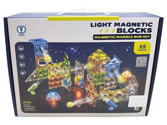 Klocki magnetyczne ze światłem, 69 elementów Adar (627673)