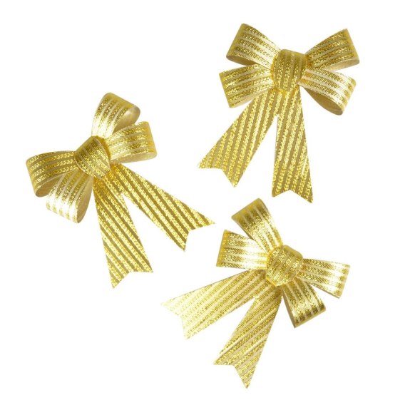 Komplet 3 sztuk błyszczących kokard o wymiarze 10x12 cm.