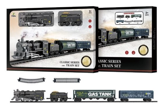 W zestawie: - lokomotywa - 3 wagoniki - 14 elementów toru Funkcje: - po włączeniu lokomotywy jedzie do przodu - wydaje odgłosy pociągu i świeci przednimi światłami Pozostałe informacje: - dł. lokomotywy z wagonikami 73 cm - wym. opak. 45 x 30 x 6 cm - baterie 2 x aa (lokomotywa) niedołączone - wiek: 3+