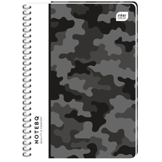 Format: A4. Liczba kartek: 120. Zadruk w kratkę. Ostre rogi. Pojedyncza spirala wkręcana. Otwory do segregatora. Perforacja wzdłuż grzbietu, ułatwiająca wyrywanie kartek. Spirala po długim boku. Wodoodporna i wytrzymała polipropylenowa okładka doskonale ochroni wszystkie ważne notatki przed zniszczeniem, a także w 100% podlega recyklingowi.