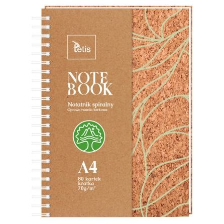 Kołozeszyt (kołonotatnik) A4 oprawa korkowa 5903242103407 A4 80k. 70g krata Tetis (KB050-KA4)