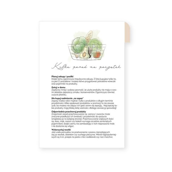 Przepiśnik na podwójnej spirali w formacie A5. W twardej oprawie z eleganckimi, złotymi detalami na okładce. W środku 96 naklejek, strony na własne przepisy i notatki, kieszonka na luźne kartki, a także 32 strony ilustrowanego, kuchennego miniporadnika. Kartki w kropki z kolorowymi registrami umożliwią kreatywne notowanie przepisów. Produkt dostępny jest w różnych, oryginalnych wzorach. Doskonały prezent dla miłośników gotowania. Idealny prezent dla przyjaciółki, mamy lub cioci.