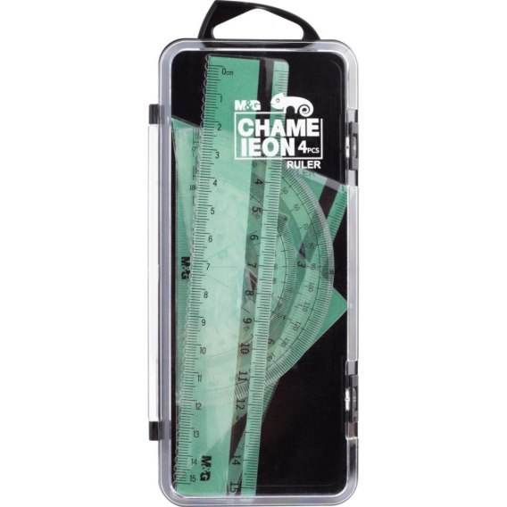 Zawiera: linijkę 15 cm, 2 ekierki oraz kątomierz