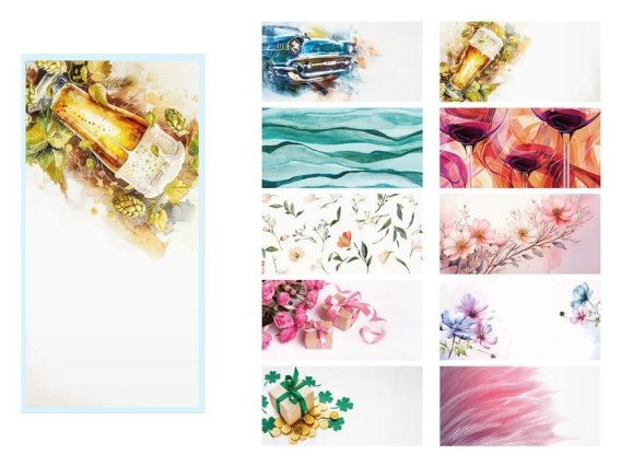 Koperty DL z nadrukiem na całej powierzchni, całoroczne, z paskiem samoklejącym.