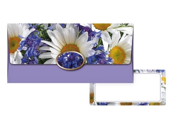 Koperta podarunkowa. Wewnątrz znajduje się ozdobna karteczka, na której można napisać życzenia. Każda koperta jest zapakowana osobno w folię z zawieszką euro.