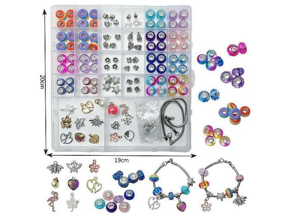 Zestaw do robienia bransoletek - charms, koraliki, aplikacje, w pudełku; 22x20x3cm, Box