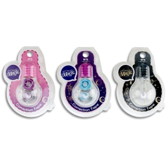 Ciekawie wykonany korektor w kształcie żarówki. Precyzyjna taśma długości 5 m. Szerokość taśmy 5 mm. Wygodny uchwyt. 12 szt. w opak.