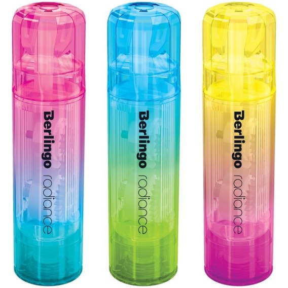 –Korektor w taśmie Berlingo „Radiance”. Opakowanie zawiera 12 szt. bardzo wydajnych korektorów w pięknych gradientowych kolorach charakterystycznych dla serii Radiance. Dzięki korektorom poprawisz błędy tekstu pisanego odręcznie, maszynopisu lub wydruków.
