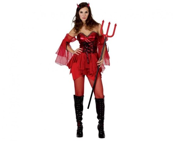 Kostium Zestaw dla dorosłych Grzeszna Diablica (sukienka z rękawami, rogi ), rozm. S Godan (SL-DBLS)