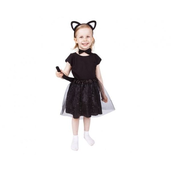 Kostium zestaw kotek czarny (spódniczka, ogona na rzep,muszka,opaska) 3-6 lat Godan (ZKCZ-OB)
