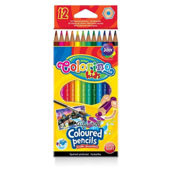 KREDKI AKWARELOWE 12 KOL. + PĘDZELEK COLORINO.