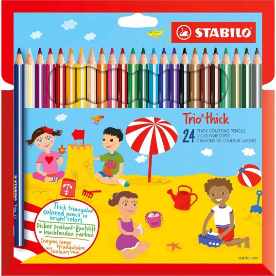 KREDKI STABILO TRIO GRUBE DLA MAŁYCH ARTYSTóW Drewniane kredki o ergonomicznym, trójkątnym przekroju. Gruby rdzeń o średnicy 4,2 mm Kartonowe etui z zawieszką, 24 szt.