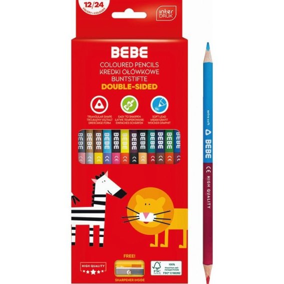Kredki ołówkowe z temperówką 12/24 kol. Interdruk (trójkątne dwustronne)