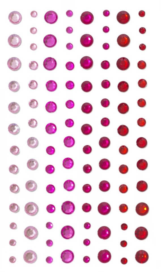 Kryształki samoprzylepne, 104 sztuki w opakowaniu, rozmiar: 3-6mm, samoprzylepne, kolor czerwony,