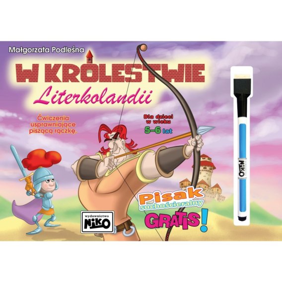 Książka „W Królestwie Literkolandii" adresowana jest do dzieci 5-6-letnich. To zbiór ćwiczeń w pisaniu liter, sylab i wyrazów w powiększonej liniaturze na laminowanych stronach.