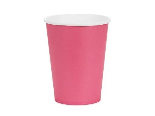 Kubeczki papierowe w kolorze ciemnoróżowym. Wysokość ok. 9 cm, pojemność ok. 250 ml (8.5 oz). Produkt jednorazowego użytku. Nie używać do gorących napojów. Kubki na napoje zawierają oznaczenia wymagane przez Rozporządzenie wykonawcze Komisji (UE) 2020/2151 z dnia 17 grudnia 2020 r. ustanawiające zasady dotyczące zharmonizowanych specyfikacji w odniesieniu do oznakowania produktów jednorazowego użytku z tworzyw sztucznych wymienionych w części D załącznika do dyrektywy Parlamentu Europejskiego i Rady (UE) 2019/904 w sprawie zmniejszenia wpływu niektórych produktów z tworzyw sztucznych na środowisko. Produkt zawiera etykietę wyłącznie w języku polskim, niemieckim, czeskim, francuskim, niderlandzkim, słowackim, słoweńskim i bułgarskim.