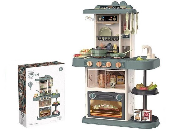 Zestaw kuchnia wys.72cm z wyposażeniem, 38 części, światło, dźwięk, funkcja wody w kranie; 59,5x16x44cm, Box