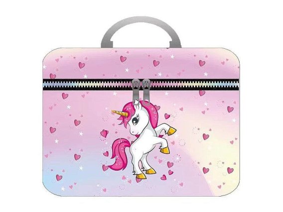 Kuferek M z lusterkiem, wzór jednorożec , zapinany na zamek Adar (570337)