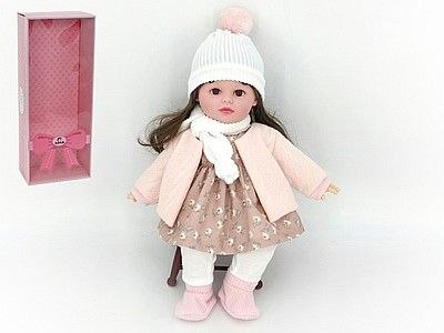 Lalka 40cm, w zimowym ubranku, z dźwiękiem: śpiewa i mówi po polsku, Box