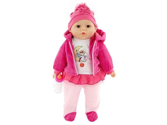 Lalka bobas 35cm, z butelką, z dźwiękiem: śpiewa i mówi po polsku, torba PVC [mm:] 350 Adar (519855)