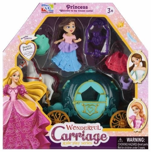 Zalety produktu: rozwija kreatywność dziecka, zabawa lalką przeniesie dziecko w świat mody. Lalka z akcesoriami to wspaniały zestaw. Lalka z dodatkami pozwoli Twojemu dziecku przenieść się w świat lalek wzorowanych na styl lalek Barbie. W jednym opakowaniu mała laleczka z akcesoriami tj: kareta z koniem. Zawartość zestawu: Lalka 8 cm Księżniczka, Kareta z Koniem, dodatkowa sukienka. Całość wykonana z plastiku. Wymiary/waga/baterie: wymiary produktu [cm]: lalka 8 cm, kareta z koniem (dł. x wys. x gł.)[cm]: 17x13x10, wymiary opakowania (dł. x wys. x gł.) [cm]: 21x21x7, waga produktu bez opakowania [kg]: 0,07 kg, waga produktu w opakowaniu [kg]: 0,19 kg, nie wymaga zasilania bateriami. Produkt przeznaczony dla dzieci w wieku: 3+. Pakowany w kartonik z okienkiem. W kartonie zbiorczym 96 szt.