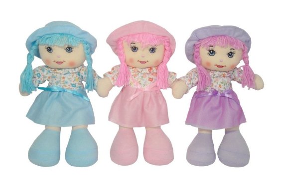 Lalka szmacianka Dorotka w sukience w kwiatki i tiulowej części spódnicowej. Lalka interaktywna. Śpiewa piosenki: `Pieski małe dwa`, `Jesteśmy jagódki`, `My jesteśmy krasnoludki` oraz mówi, wita się, prosi, żeby ją przytulić i ukołysać do snu, zachęca do zabawy, pyta o obiadek itp. Lalka przeznaczona dla dzieci od pierwszych dni życia. Zabawka działa na baterie typu AG13/LR44. Baterie znajdują się w zabawce.