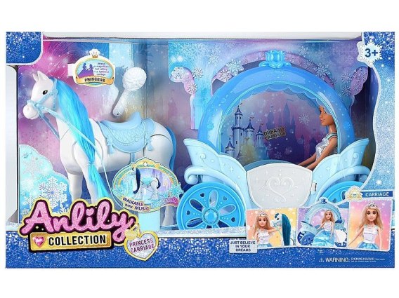 Karoca z lalką 29cm i chodzącym koniem, na baterie, z muzyką; 57x34,5x17,5cm, W/B