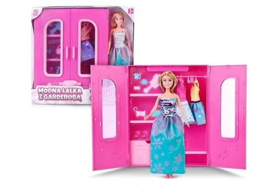 Lalka w sukience z akcesoriami i otwieraną, pojemną szafą. Jest ubrana w piękną sukienkę z cekinami i tiulem. Na jej stylizacji znajdują się również wyszyte płatki śniegu. Ma włosy spięte za pomocą gumki. W opakowaniu znajdziemy również wielką, różową szafę, a w niej mnóstwo dodatków. Wszystko zostało zapakowane w pudełko z dużym okienkiem. Jest to świetna zabawka dla każdego dziecka, które jest zainteresowane strojami i akcesoriami. W komplecie: - laleczka, - otwierana szafa, - dodatkowe buty, - torebki, - spinki, - szczotka, - dodatkowe stylizacje. Wymiary opakowania: 20x9,5x33cm Wiek: 3+
