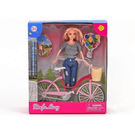 Lalka 29cm z rowerem; 32x27x10cm; W/B