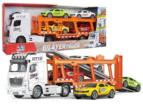 Auto z lawetą 2 poziomową i 4 autami, 56x20x10,5cm; 60x14x26cm, W/B