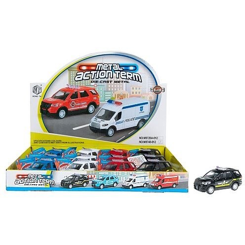 Zalety produktu: metalowy samochód, samochód posiada funkcję pull back, dzięki czemu po naciągnięciu kół pojazd kontynuuję jazdę samodzielnie, samochód występuje w czterech wersjach kolorystycznych: niebieski, biały, czerwony lub czarny. Metalowe modele samochodów chyba nigdy się nie znudzą. Tym bardziej nie znudzą się metalowe Auta Ratunkowe MEGA CREATIVE! Zawartość zestawu: samochód ratunkowy. Wymiary/waga/baterie: wymiary produktu (dł. x wys. x gł.) [cm]: 10x4x4,wymiary opakowania display (dł. x wys. x gł.) [cm]: 32x5x30 ,waga produktu bez opakowania [kg]: 0,06 kg, waga produktu w opakowaniu display [kg]: 0,94 kg. Zabawka przeznaczona dla dzieci w wieku: 3+. Pakowane w display po 12 szt.