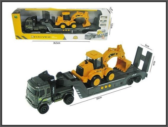 Laweta z autem budowlanym 30cm ze światłem i dźwiękiem 2rodz