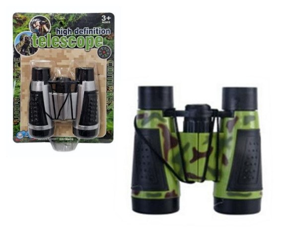 Lornetka zabawkowa wykonana z tworzywa sztucznego. W zestawie lornetka z paskiem do zawieszenia. Zabawka przeznaczona dla dzieci od lat 3. Produkt zapakowany w kartonową podstawkę z przezroczystym kloszem. Podane wymiary są wymiarami opakowania.